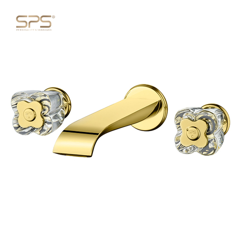 ก๊อกน้ำทองเหลืองสำหรับห้องน้ำก๊อกติดผนังก๊อกน้ำเย็นร้อนวัสดุใหม่สำหรับอ่างล้างหน้าก๊อกน้ำทอง A3023